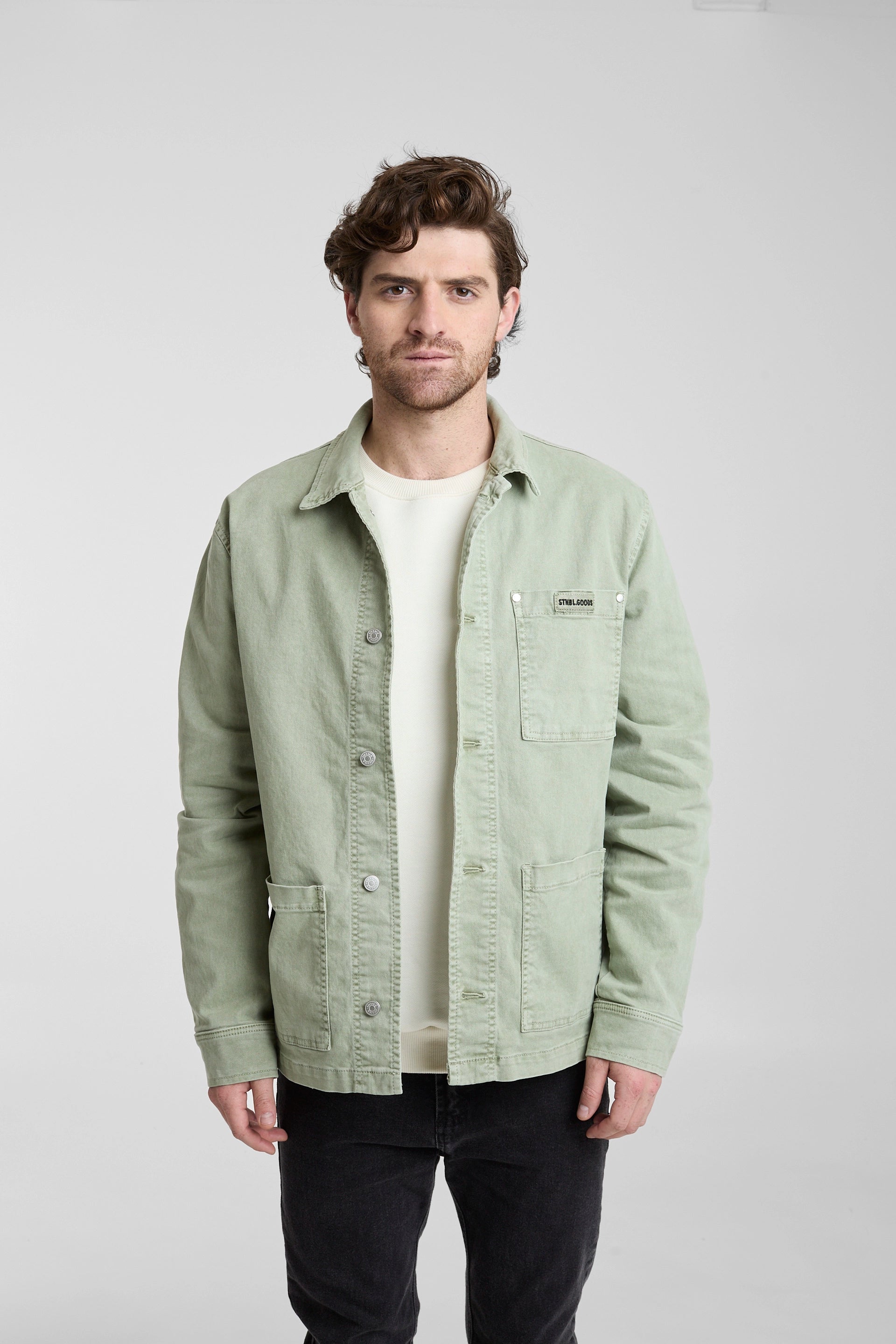 Chaqueta tipo workwear unisex. Tiene botones metálicos en el delantero y puños, remaches metálicos en bolsillo pecho y mangas, 3 bolsillos sin tapa y cuello camisero.