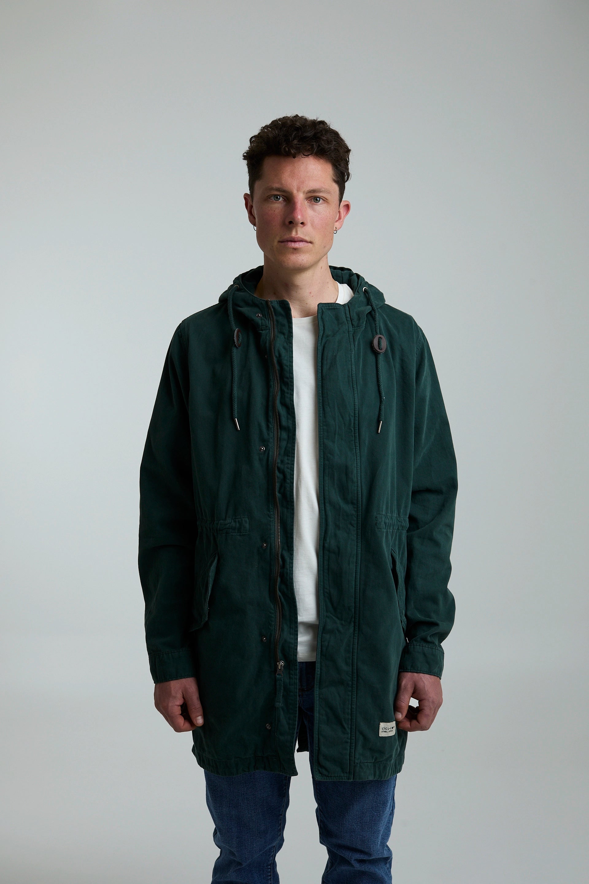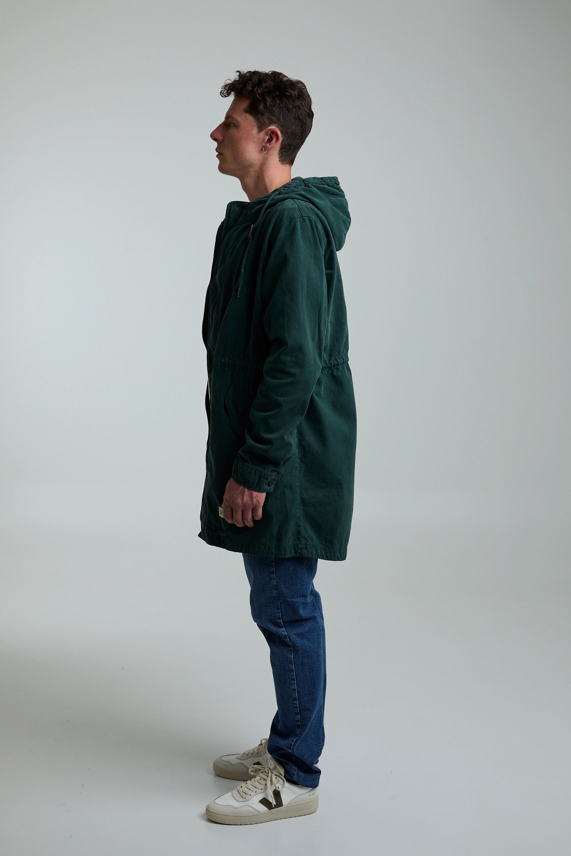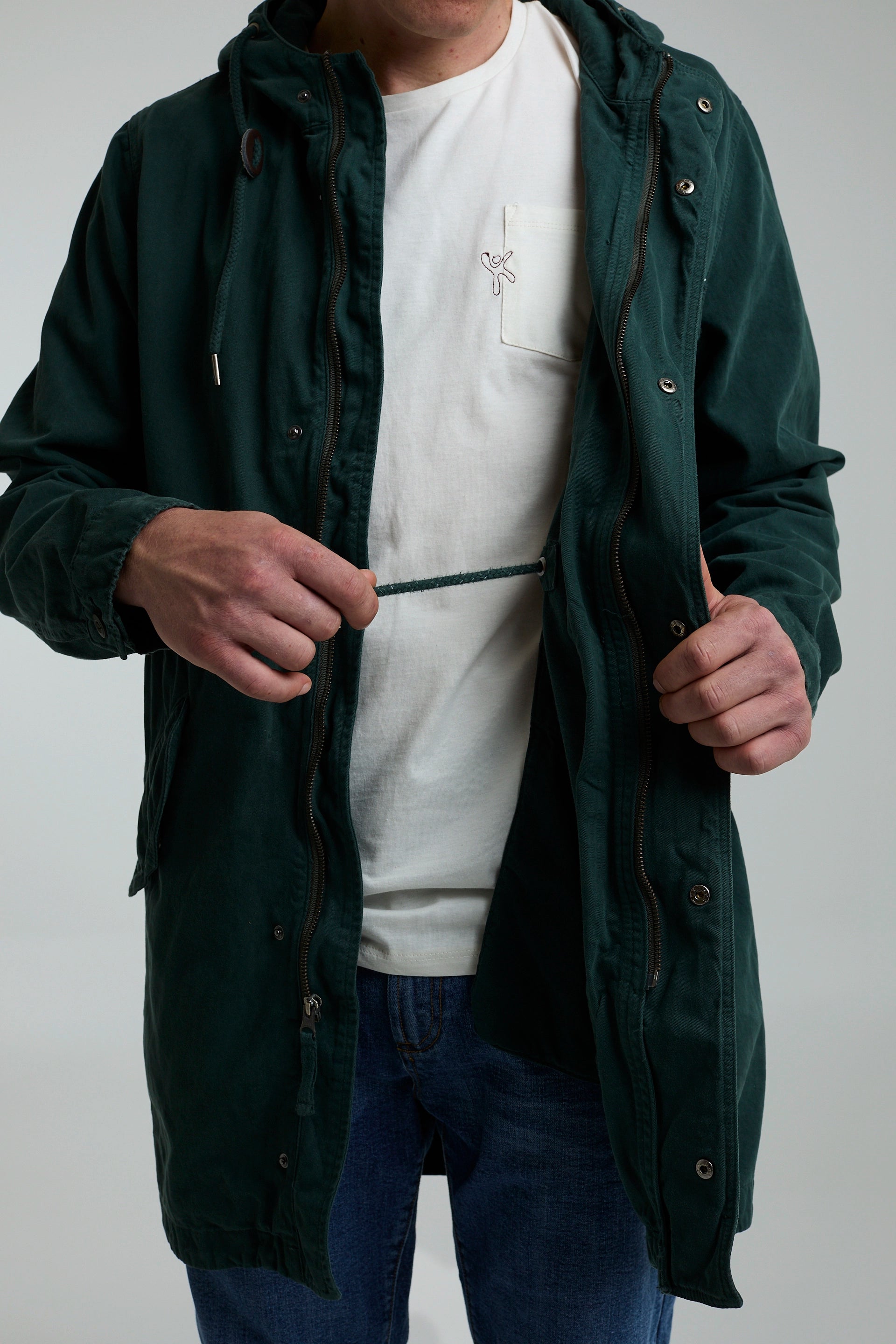 El modelo mide 1.82 cm y usa chaqueta talla M y pantalon talla 32.